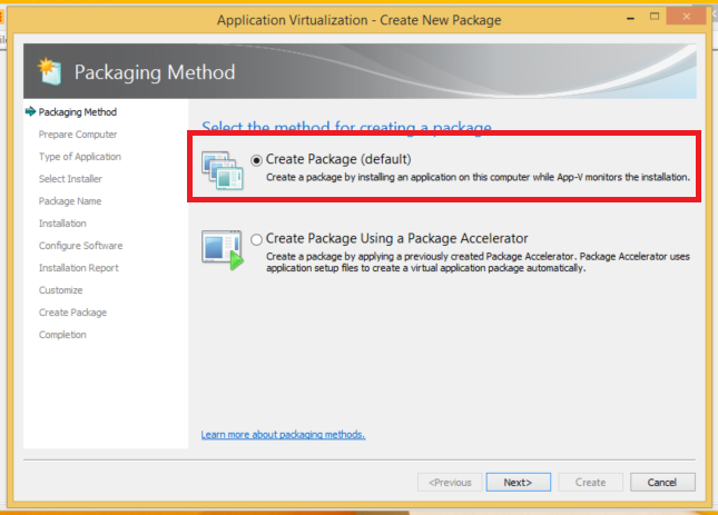 In diesem Beispiel gehen wir aber den konventionellen Weg über Create Package (default)