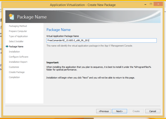 Benennen Sie Ihr Packet den Packaging Guidlines entsprechend und drücken Sie dann Next um die Installation zu starten. Achtung: Spätestens jetzt benötigen Sie die Installationsanleitung.