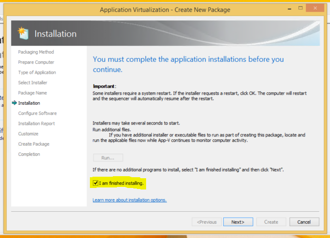 Da ich in meinem Beispiel nur einen Installer habe wähle ich die obere Option. Sollten Sie aber mehrere Installer ausführen müssen, wählen Sie Perform a custom installation. Grundsätzlich ist es aber anzuraten mehrere Pakete zu machen statt einem grossen und die Dependencies dann zum Beispiel in SCCM zu definieren.