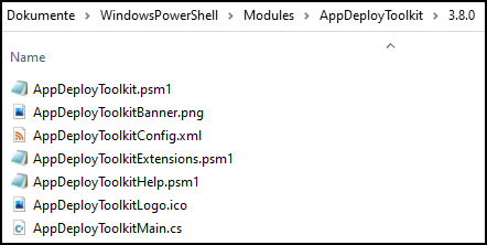 - Im neuen Ordner „AppDeployToolkitMain.ps1“ in „AppDeployToolkit.psm1“ umbenennen. Das sieht dann also folgendermassen aus: